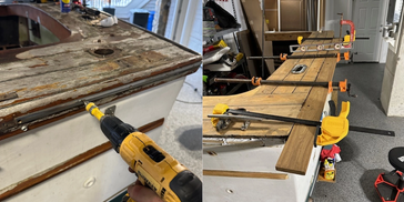 Though the boat was severely damaged by years of weather and neglect, that old teak covered transom gave me some hope. After removing the gas tank under the deck, we were able to cut the last 5’ off the Egg Harbor to separate it, and transport it to its new home in Rhode Island.