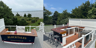A fully functioning home bar complete with a beer/wine fridge, ice maker, sink, recycling containers, and lots of storage for glasses and our favorite bottles. We named it “BlockTales” for its view out and over the beach towards Block Island, and the many fishing stories both old and new that will be told around her. It quickly became the centerpiece for many gatherings of family, friends, and neighbors celebrating life on the water – with a proper beverage in hand of course!